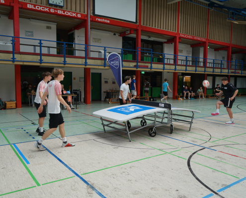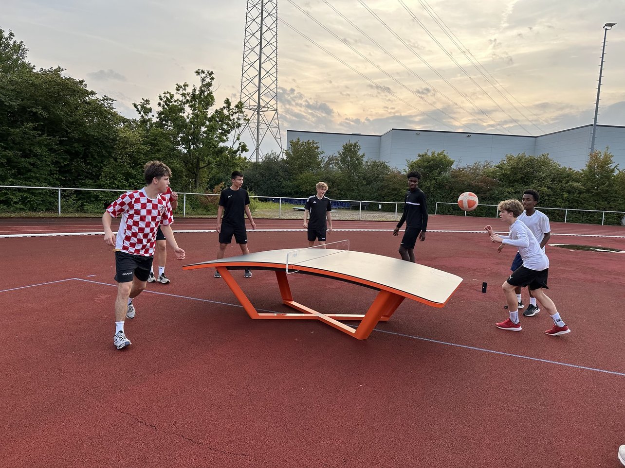 Teqball ist eine faszinierende Mischung aus Fußball und Tischtennis. Es wird auf einem speziellen gebogenen Tisch gespielt, der wie ein Tischtennistisch aussieht, aber den Ball präzise zurückspielen lässt, ähnlich wie beim Fußball. Die Spieler verwenden ihre Füße, Kopf und Schultern, um den Ball über das Netz zu befördern, wobei Geschicklichkeit und Ballkontrolle im Mittelpunkt stehen.